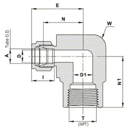 | Sku | A | T* (NPT) | D | W | N | L | L1 | I |
